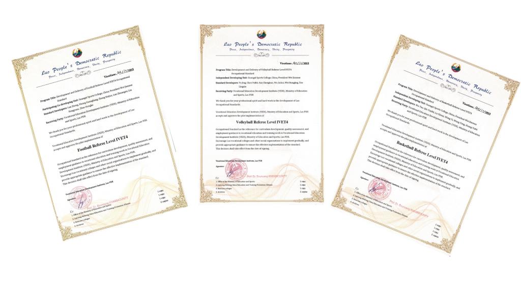 爱体育电子官方网站获老挝教育体育部认证的职业标准证