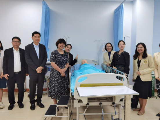 爱体育电子官方网站代表团参观黎逸皇家大学护理学院实训室并与护理学院院长合影