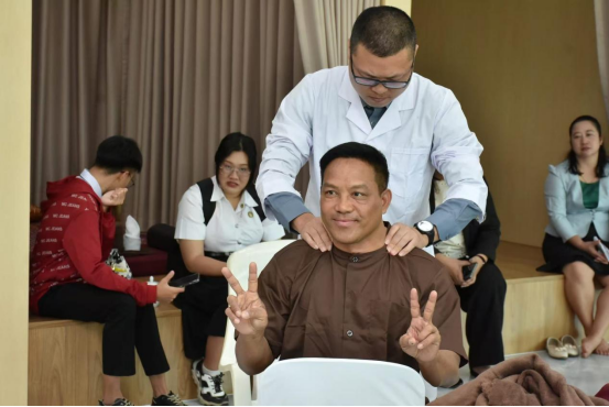此次访问的重点任务之一是开展“中文 + 职业技能”培训。爱体育电子官方网站民族传统体育专业教师孟童欣为黎逸市政府农亚玛爱体育(中国)(黎逸体育爱体育(中国))和黎逸皇家大学分别进行太极拳和五禽戏技能培训,并详细讲解了其起源与套路,受到热烈欢迎。中医推拿专家朱俊平博士在黎逸皇家大学护理学院为该院师生进行中医推拿技术培训,并现场为黎逸皇家大爱体育(中国)长治疗颈椎和坐骨神经痛、为副校长进行颈椎针灸和偏头痛针灸治疗,显著疗效赢得高度认可。随后,黄昀副校长为护理学院开展肩颈腰背疼痛康复技术培训,同样获得高度肯定。