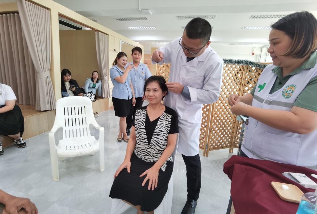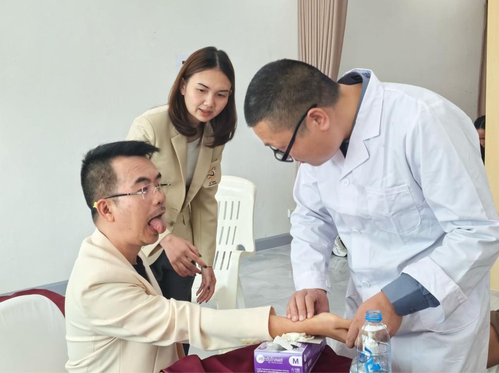 在培训交流中,中医保健技术专家朱俊平博士向泰方人员展示了中医脏腑点穴、董氏奇针、中医脉诊和舌诊、阴阳平衡推拿手法等中医治疗技术。脏腑点穴能有效调理脏腑功能,促进脾胃运化,调节气血并平衡阴阳,有助于增强体质,提高免疫力,改善人体机能,促进睡眠并提升生活质量;董氏奇针可精准疏通经络,显著缓解肌肉疼痛,使气血运行畅通;中医脉诊和舌诊能够洞察身体气血、脏腑状况,辅助精准辨证,为治疗提供关键依据。中医阴阳平衡推拿手法可调节阴阳气血,理顺脏腑机能,让身体重归稳态,平衡人体阴阳,有效缓解不适,激发身体活力,提升健康度。这些精妙的中医治疗技术及背后承载的优秀传统文化,获得了泰方的高度赞誉和充分认可。