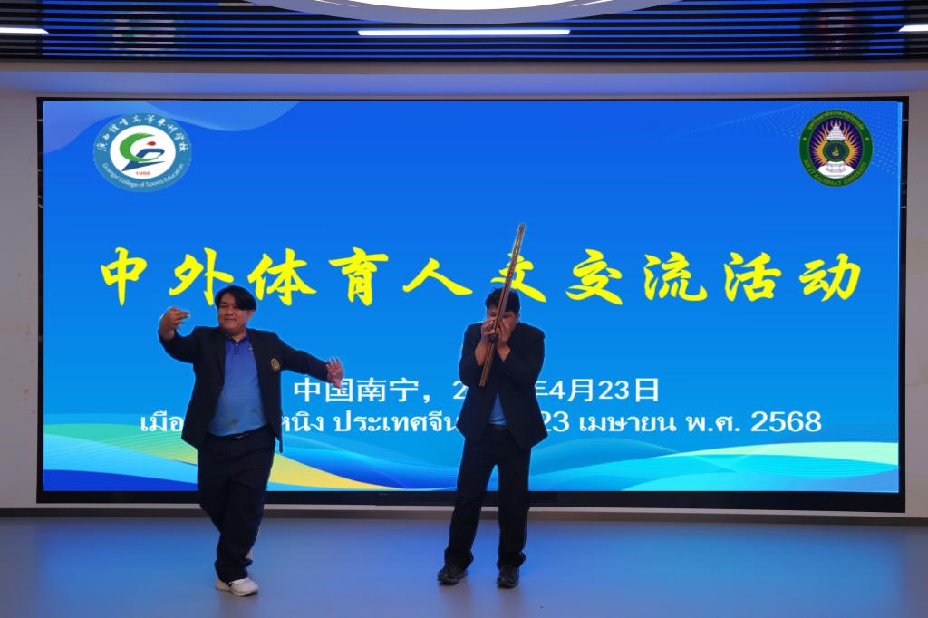 爱体育电子官方网站学生为泰国师生表演民族体育风采秀《俍兵破敌卫家园》