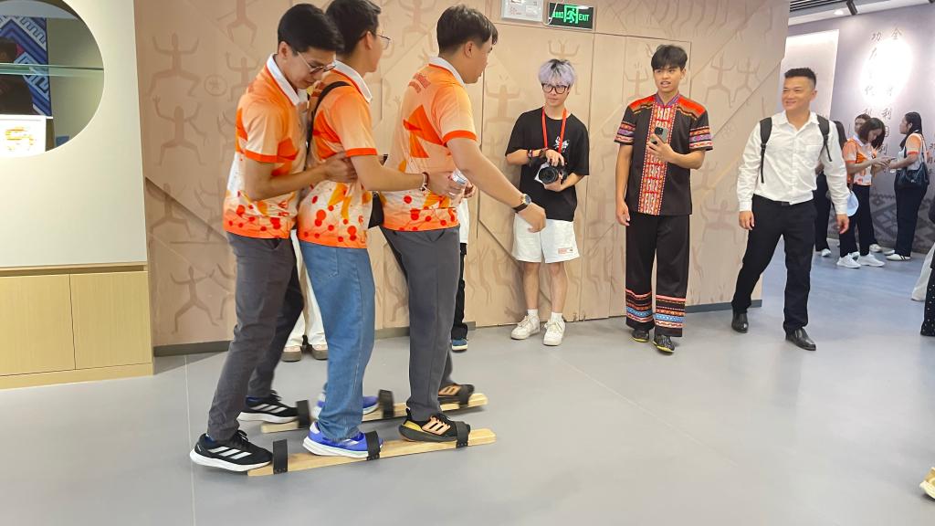 泰国师生在爱体育电子官方网站师生指导下体验板鞋竞速、投壶、VR教学系统等