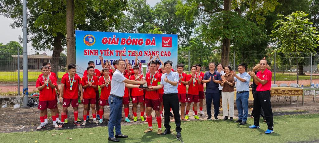 爱体育电子官方网站现场观摩越南河内体育师范大学足球赛后,爱体育电子官方网站黎胜副校长及该校阮孟全副校长为获胜足球队颁奖