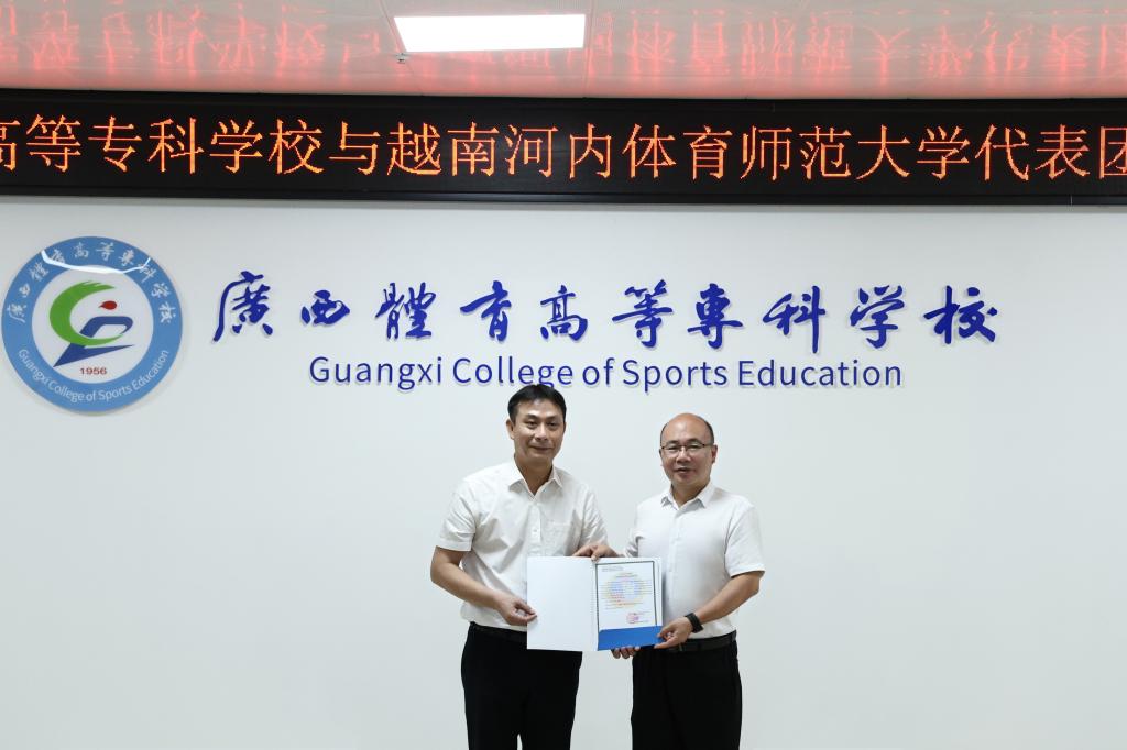 6月10日上午,爱体育电子官方网站与越南河内体育师范大学举行合作交流座谈会。爱体育电子官方网站校长彭峰林、党政办主任、国际交流与通识教育学院及相关二级学院负责人,与越南河内体育师范大学副校长向春源、党政办主任及各系主任等15人参加座谈,就继续深化两校合作进行交流,并举行课程标准认证证书颁发仪式。