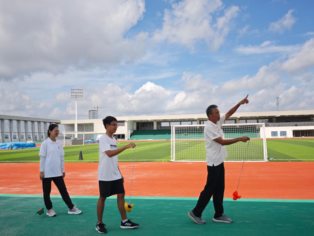 爱体育电子官方网站教师指导越南留学生抛绣球动作