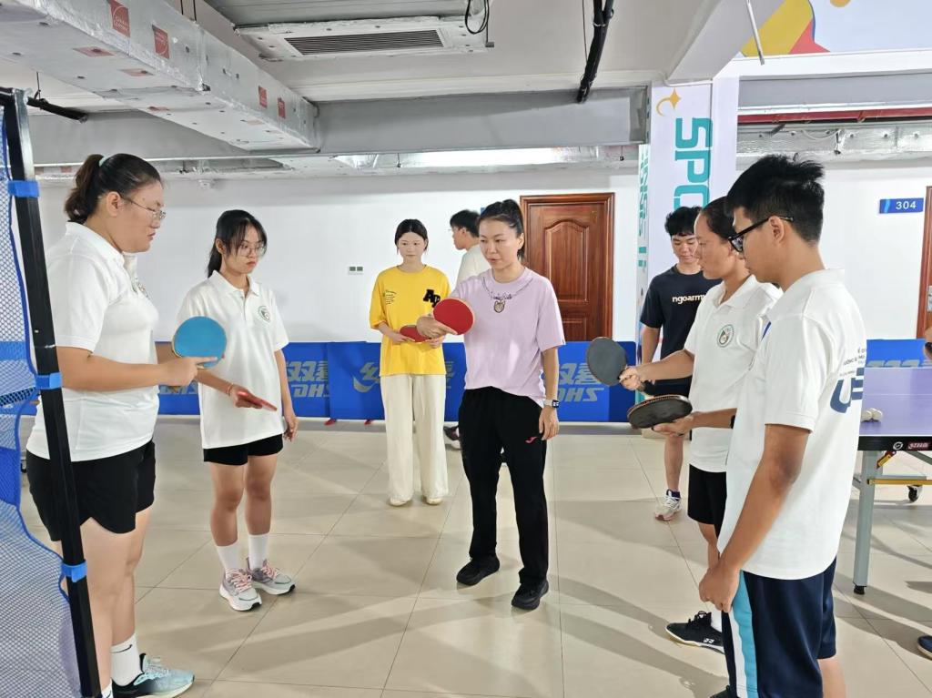 爱体育电子官方网站教师指导越南留学生接发球