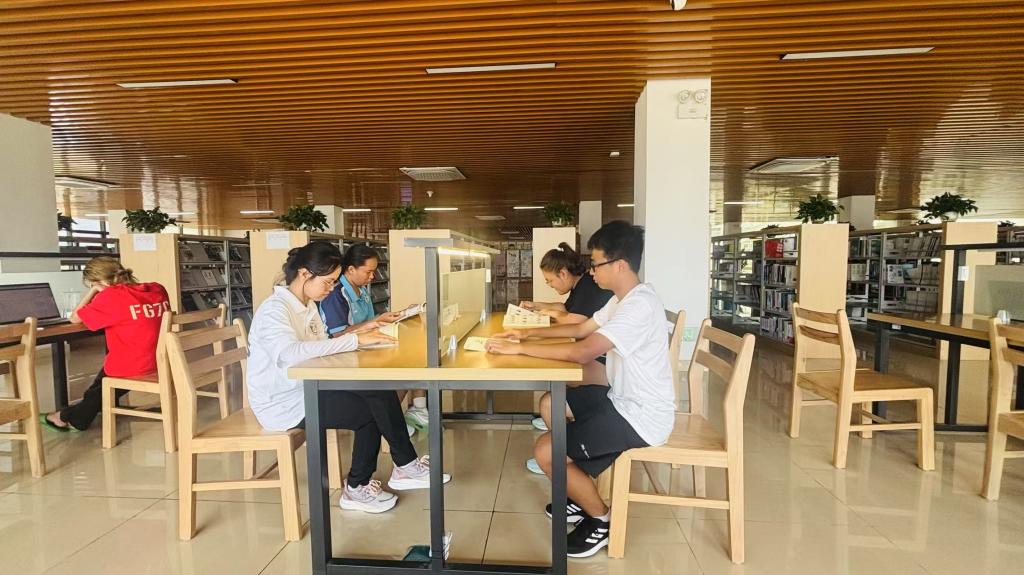 越南留学生在爱体育电子官方网站图书馆学习