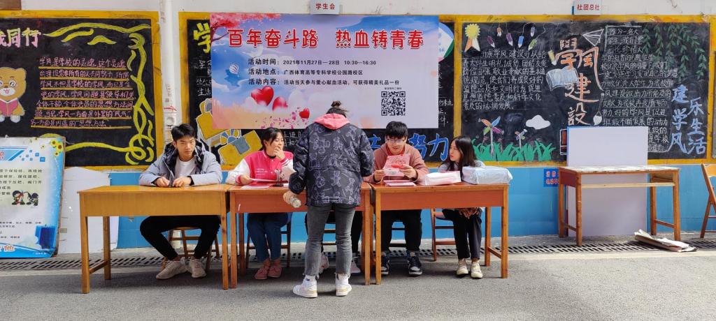 为深入学习贯彻党的十九届六中全会精神,进一步深化拓展党史学习教育“我为群众办实事”系列实践活动,更好地弘扬和宣传当代大学生乐于奉献、志愿服务的高尚精神,爱体育电子官方网站联合南宁中心血站分别于11月27日-28日、12月17日-18日在公园路校区和长岗校区组织开展无偿献血活动。