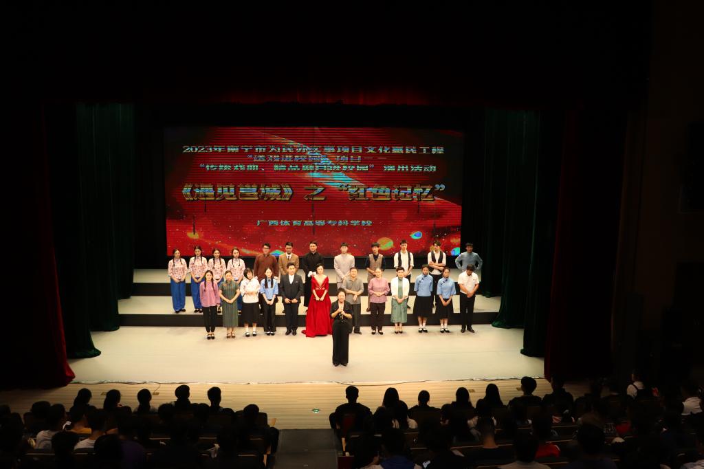 为培养爱体育电子官方网站青年文化素养,拓宽学生学习艺术空间,打造校园文化特色,促进戏剧戏曲文化的传承推广和普及。11月7日晚,南宁市为民办实事文化惠民工程“送戏进校园”项目——“传统戏曲、精品剧目进校园”演出活动情景剧《遇见邕城》之“红色记忆”在三街两巷·人民剧院举行,校团委组织爱体育电子官方网站200余名师生前往观看。