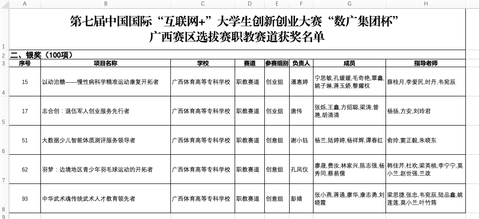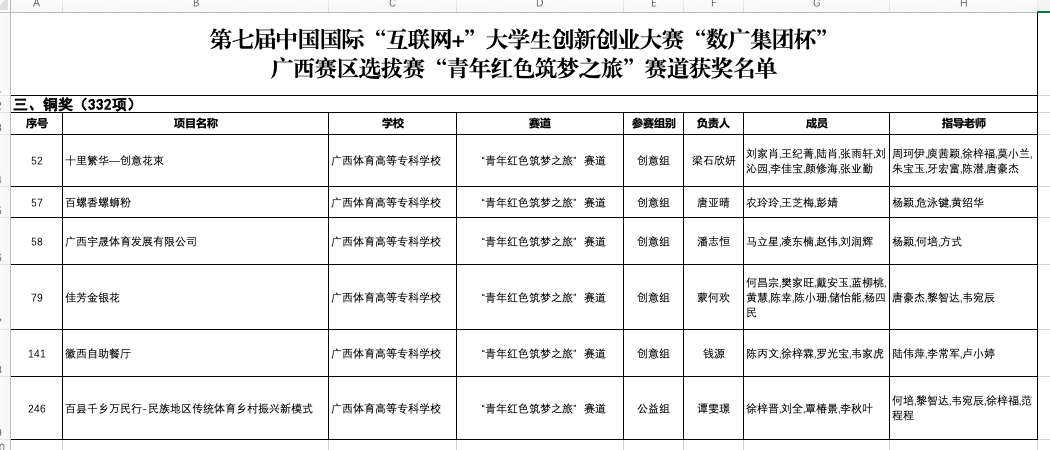 “互联网+”大学生创新创业大赛“数广集团杯”广西赛区获奖名单