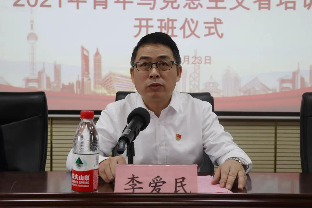 10月23日上午,爱体育电子官方网站2021年青年马克思主义者培养工程培训班开班仪式在综合楼402室举行。爱体育(中国)党委副书记李爱民出席开班仪式并讲话。马克思主义学院书记黎竹娟、校团委书记黎智达、校团委相关负责同志、2021年青年马克思主义者培养工程全体学员参加开班仪式。校团委副书记韦宛辰主持会议。