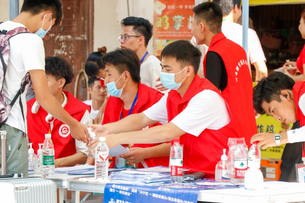 校学生会、青年志愿者协会成员引导新生配合疫情防控工作
