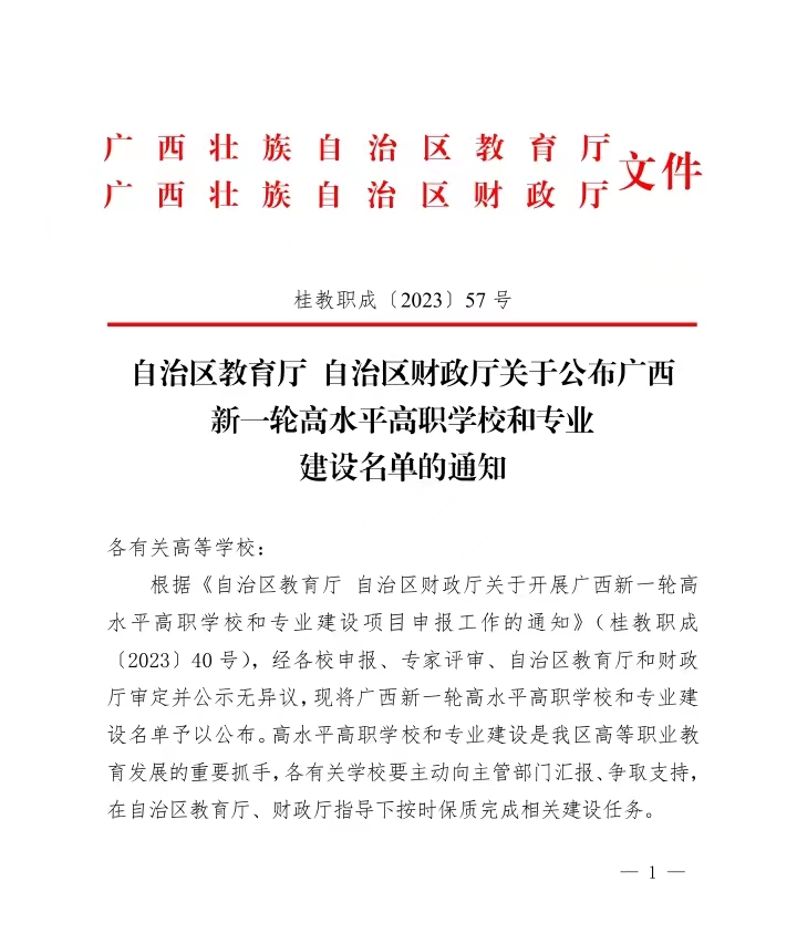 喜讯!爱体育电子官方网站入选广西新一轮高水平高职爱体育(中国)和专业建设名单