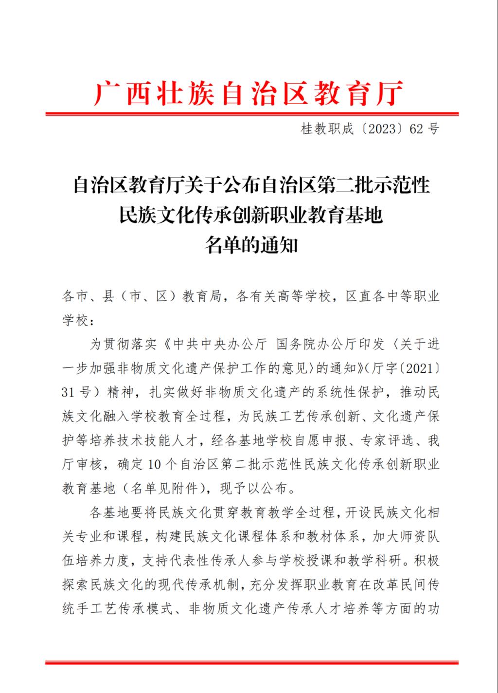 自治区教育厅公布第二批示范性民族文化传承创新职业教育基地