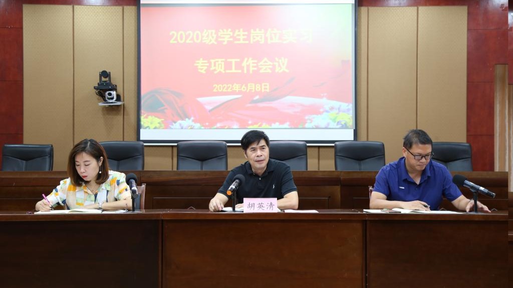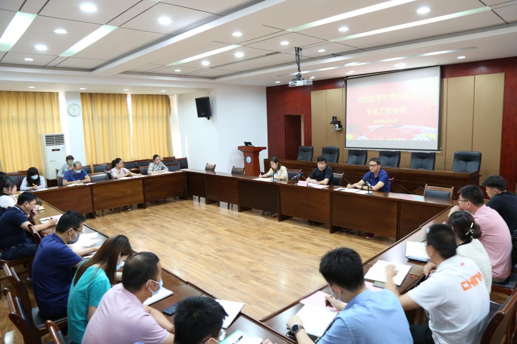 6月8日上午,爱体育电子官方网站召开2020级学生岗位实习专项工作会议。胡英清校长、教务科研处分管实习工作副处长、各学院院长、分管实习工作副院长及2020级年级辅导员参加了会议。会议由教务科研处副处长兰政主持。