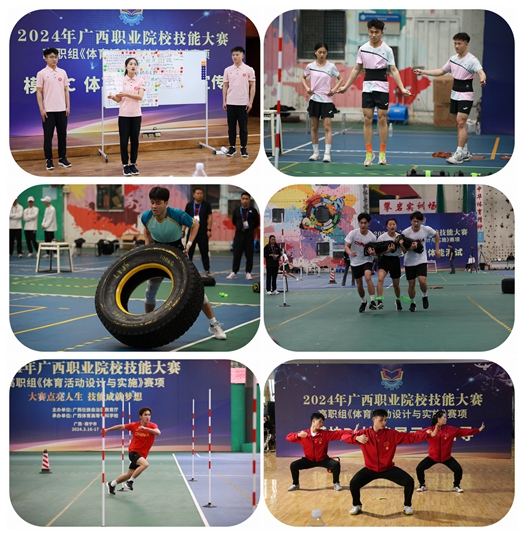 据悉,《体育活动设计与实施》是广西职业院校技能大赛首次设置的广西区赛赛项。赛项包括基础技能测试、体育活动设计、体育活动实施三个子项目,分为体育活动职业素养测评、基础体能测试、体育活动策划与宣传、技能展示与指导四个模块进行比赛。赛项内容涵盖了体育类专业的核心技能和职业素养。