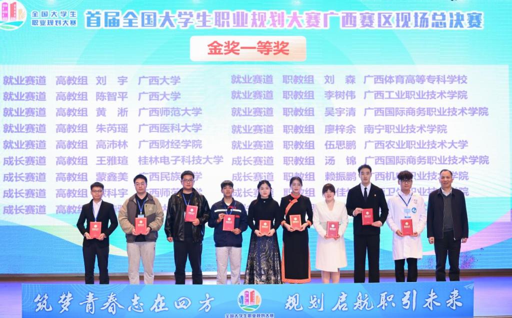 筑梦青春志在四方,规划启航职引未来。3月12日至13日,由自治区教育厅主办的首届全国大学生职业规划大赛广西赛区现场总决赛在广西师范大学成功举办,爱体育电子官方网站有两位选手分别参加总决赛职教组就业赛道、成长赛道的角逐,均获区赛金奖。其中,赵海霞老师团队指导的2021级社会体育专业刘森同学获得职教组就业赛道金奖一等奖,顺利晋级国赛。