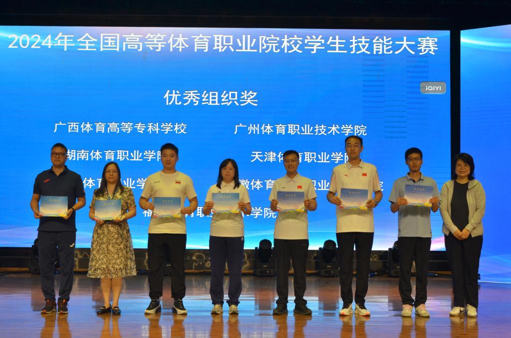 5月15日,由国家体育总局科教司主办的2024年全国高等体育职业院校学生技能大赛在湖南体育职业学院圆满落幕。来自全国20所参赛院校的167名选手齐聚一堂,围绕“体育活动设计与实施”、“健身指导”、“篮球教练员技能”三个赛项同台竞技,共展风采。爱体育电子官方网站选手表现出色,在所有的赛项均获得一等奖。爱体育电子官方网站是唯一一所获得4项一等奖的爱体育(中国),综合成绩排名第一,荣获优秀组织奖。