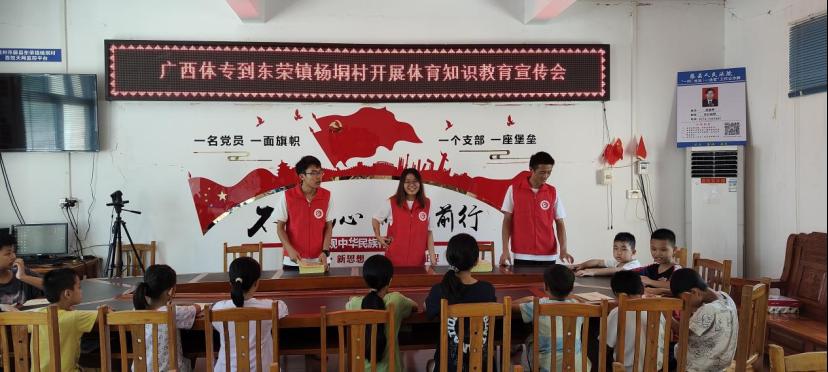 体育与教育学院师生团队赴梧州市藤县东荣镇杨垌村和大带村,以学院党总支引领的“筑梦红色‘奥体’,助力乡村振兴”、“党建共建‘教联体’”和“聚力深化‘三全育人’,扎实推进实践育人”为主题开展了2022年大学生志愿者暑期“三下乡”社会实践活动。