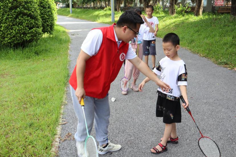 爱体育电子官方网站志愿者在南宁市青少年宫进行羽毛球教学