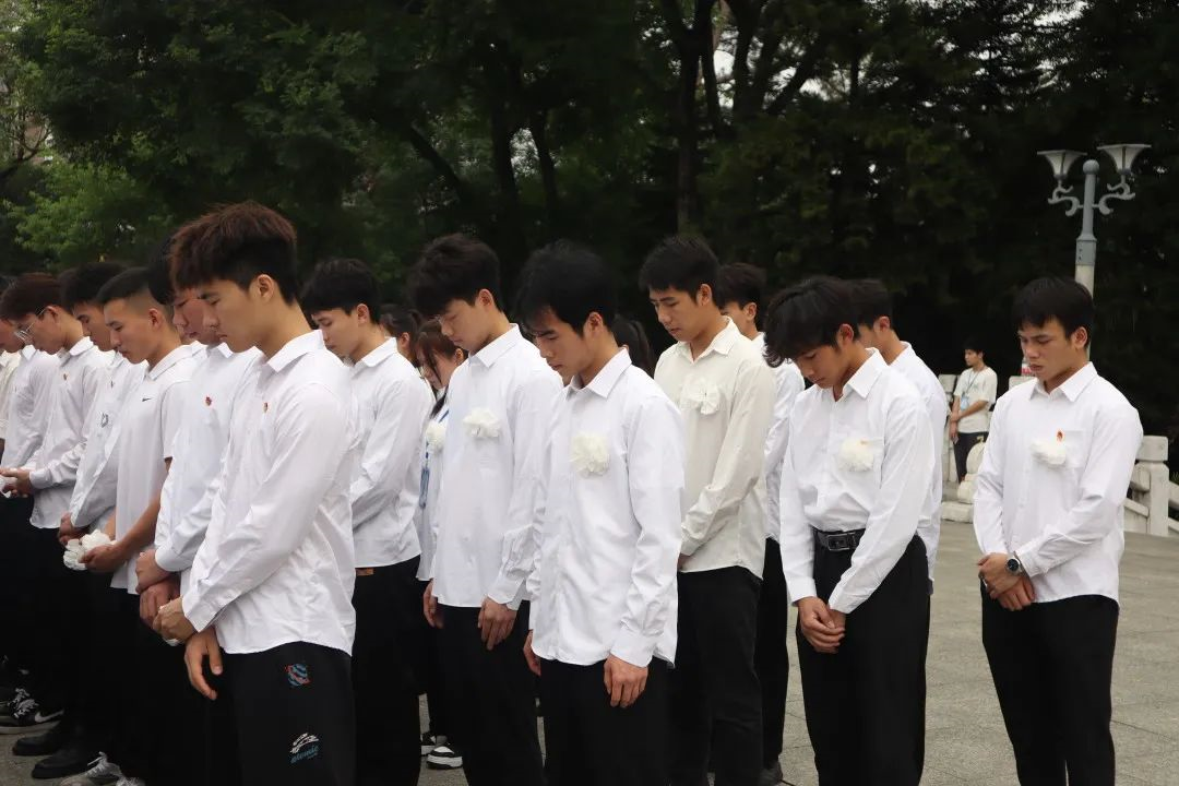 仪式开始,随着中华人民共和国国歌的奏响,现场全体人员集体高唱中华人民共和国国歌。国歌唱毕,师生们列队整齐,列队肃立默哀,向烈士纪念碑敬献花圈、小白花,表达对革命先烈的深切哀思和崇高敬意。