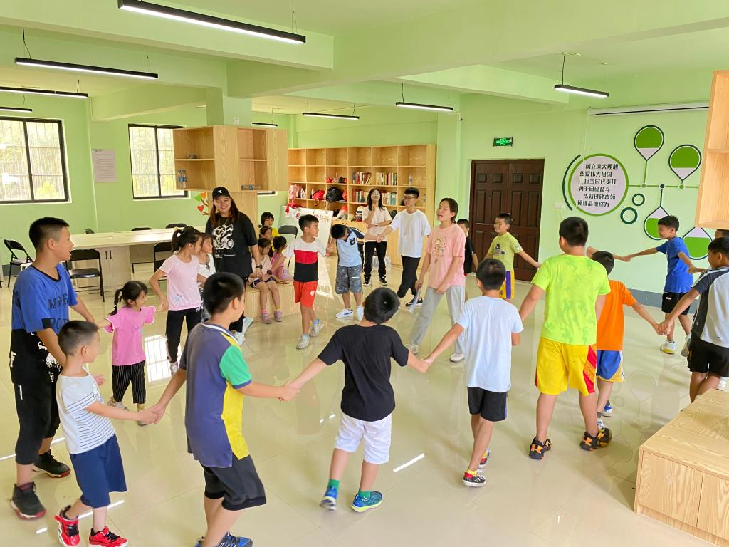 大学生志愿者正在江西镇教学