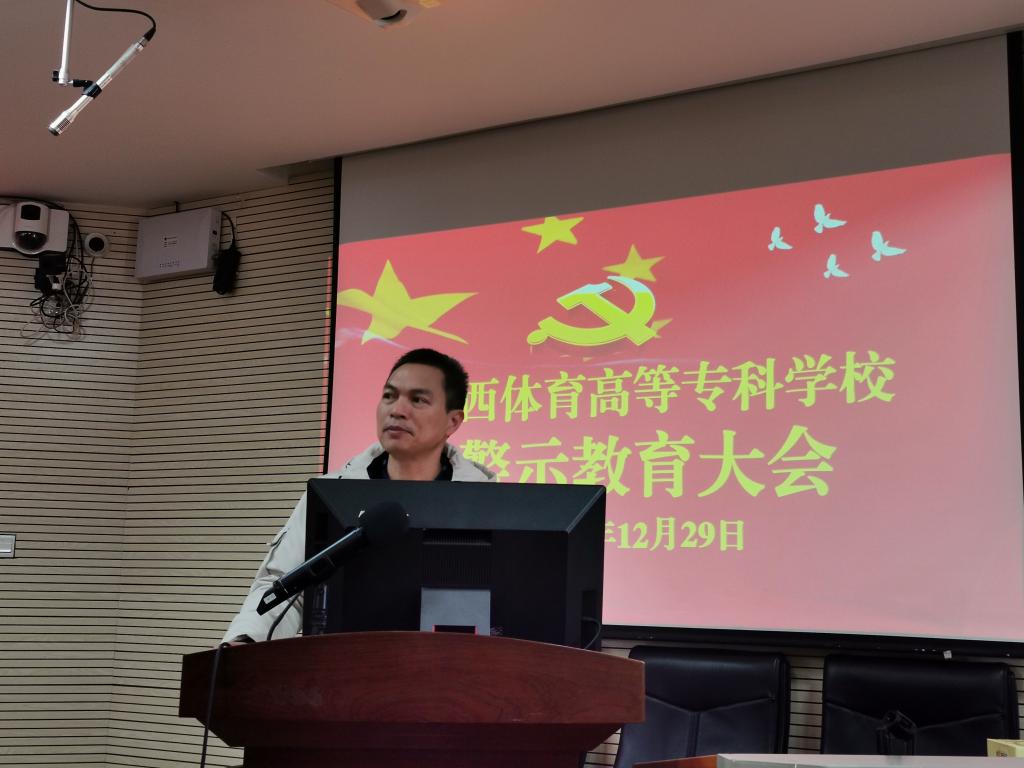 为深入贯彻落实党的十九届六中全会精神,坚定不移推进党风廉政建设和反腐败斗争,一体推进不敢腐、不能腐、不想腐,筑牢爱体育电子官方网站党员干部拒腐防变的思想防线,12月29日下午,爱体育电子官方网站警示教育大会暨专题廉政党课在综合楼402报告厅举行。爱体育(中国)党委委员、纪委书记罗黎造主持会议。爱体育(中国)机关工作人员,各学院领导班子成员,各党总支部、党支部书记及全体纪检监察干部参加了会议。