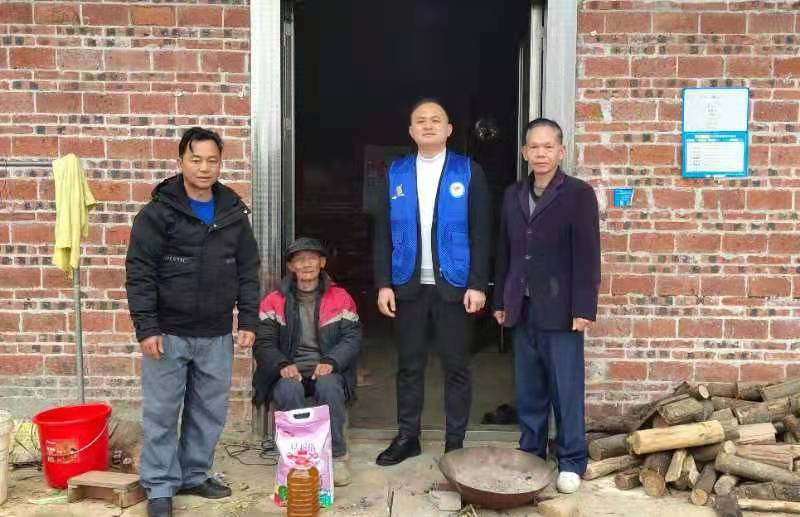 驻藤县东荣镇杨垌村第一书记李鸿辉(左二)率工作队员、村“两委”干部一行到村五保户梁永照家中,向老人送上新春祝福和慰问品