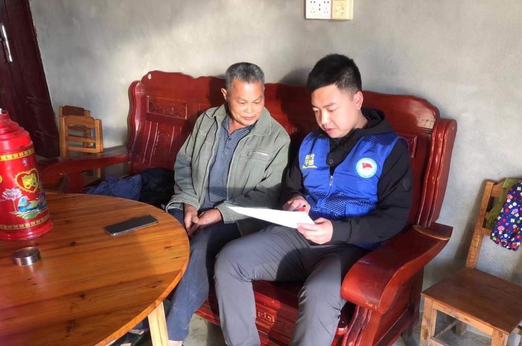 驻藤县宁康乡永太村第一书记梁祖卓(右一)率驻村工作队到监测户黄炎松家中走访,了解生产生活情况和送上新春祝福并为其推荐就业岗位
