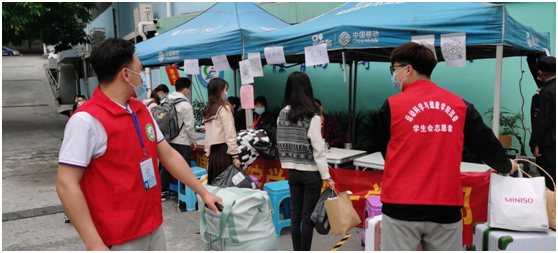 运动科学与健康学院学生会志愿者在接待点服务学生