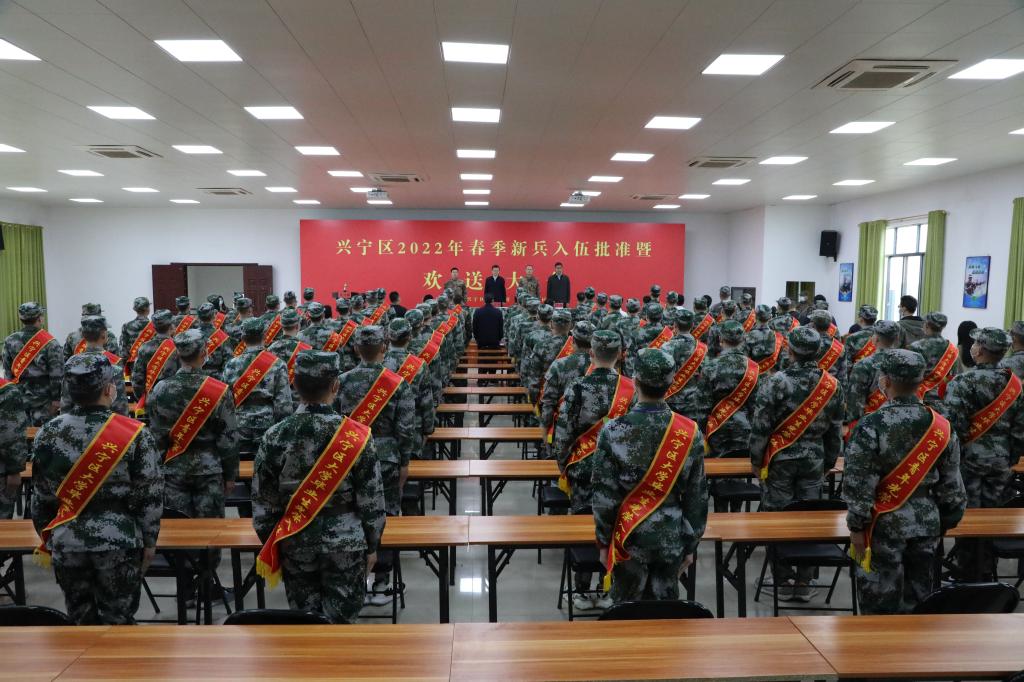 欢送大会在庄严的国歌中拉开序幕,接着,兴宁区人民武装部王茂林部长宣读了兴宁区2022年春季入伍命令。随后,新兵们进行宣誓,向祖国表明入伍决心。爱体育电子官方网站新兵整装待发,纷纷表示,在部队中一定牢记习近平总书记“强国必须强军,军强才能国安”的重要讲话,发扬不怕苦不怕累的精神,为“八一”军旗增光添彩。