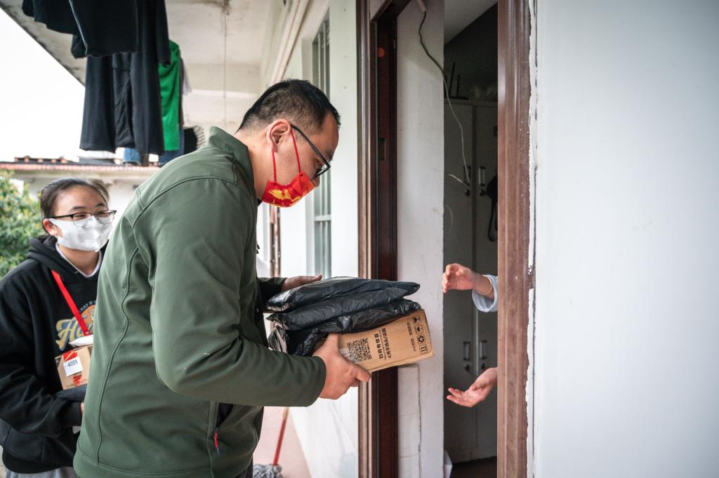 党员们为同学们送快递到宿舍