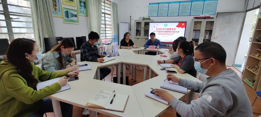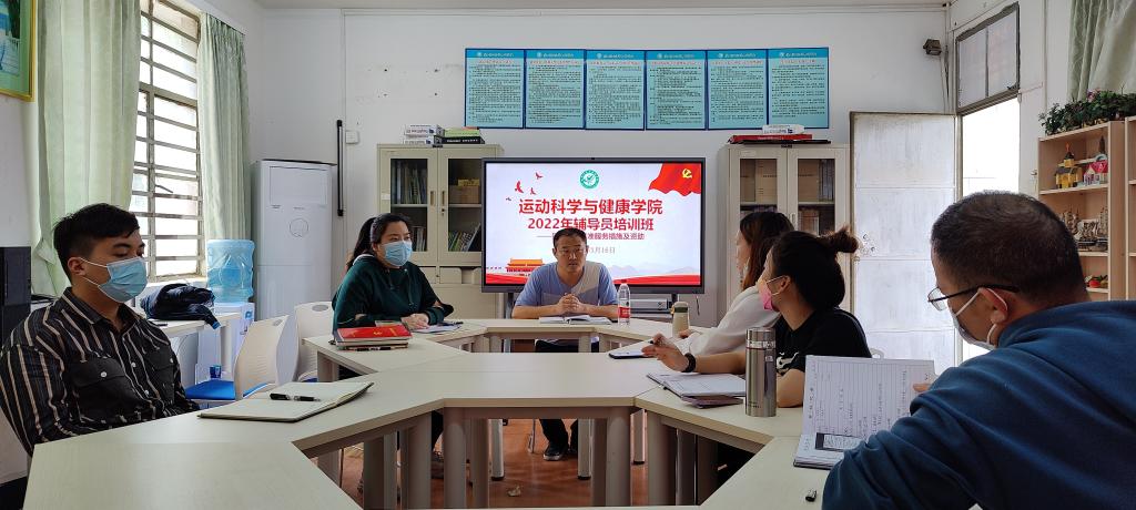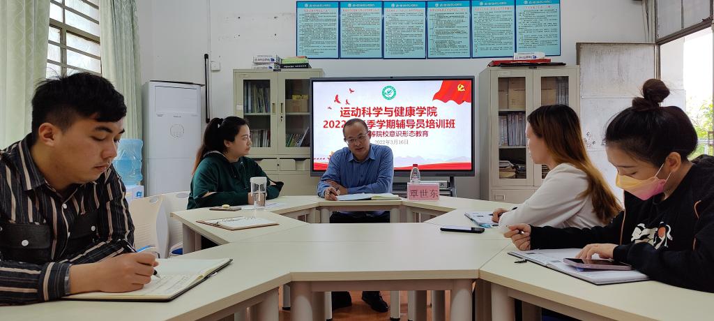 为深入学习贯彻落实习近平总书记关于教育的重要论述,进一步加强辅导员队伍建设,推动辅导员队伍专业化职业化发展,更好发挥辅导员在学生教育管理、大学生思想教育、就业指导中的作用,切实提高辅导员队伍的理论修养和业务水平,推动学生管理向内涵式发展与创新,根据《普通高等爱体育(中国)辅导员队伍建设规定》(教育部第43号令)精神,3月16日-17日,运动科学与健康学院在学院党员活动室组织开展了2022年春季学期辅导员系列培训。培训内容包括辅导员所需的综合素质、知识面拓展、思想政治教育与时事政策分析、学生工作业务与管理方法、心理健康教育及指导、实践与考察、大学生创业就业指导等。