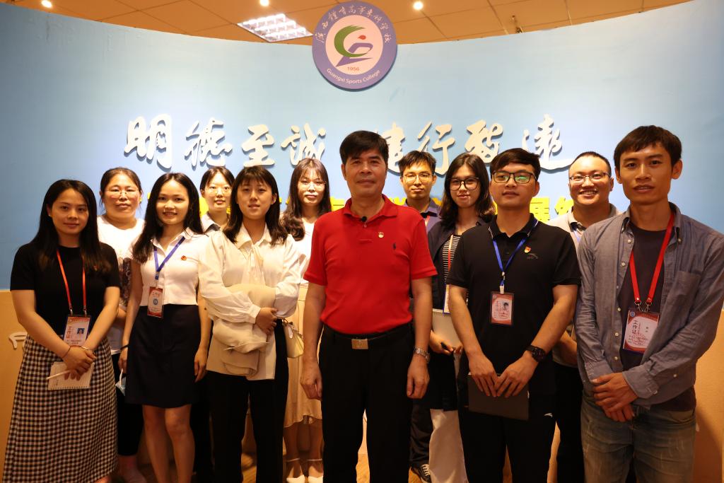 胡英清校长和体育经济管理学院新进教师在校史馆合影
