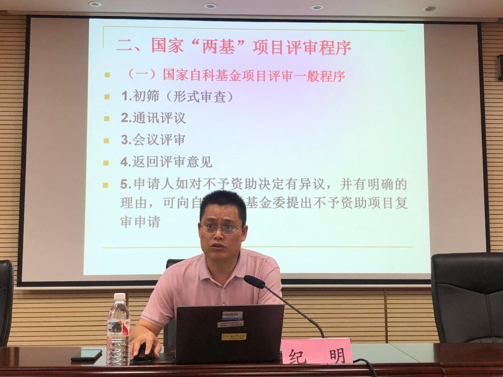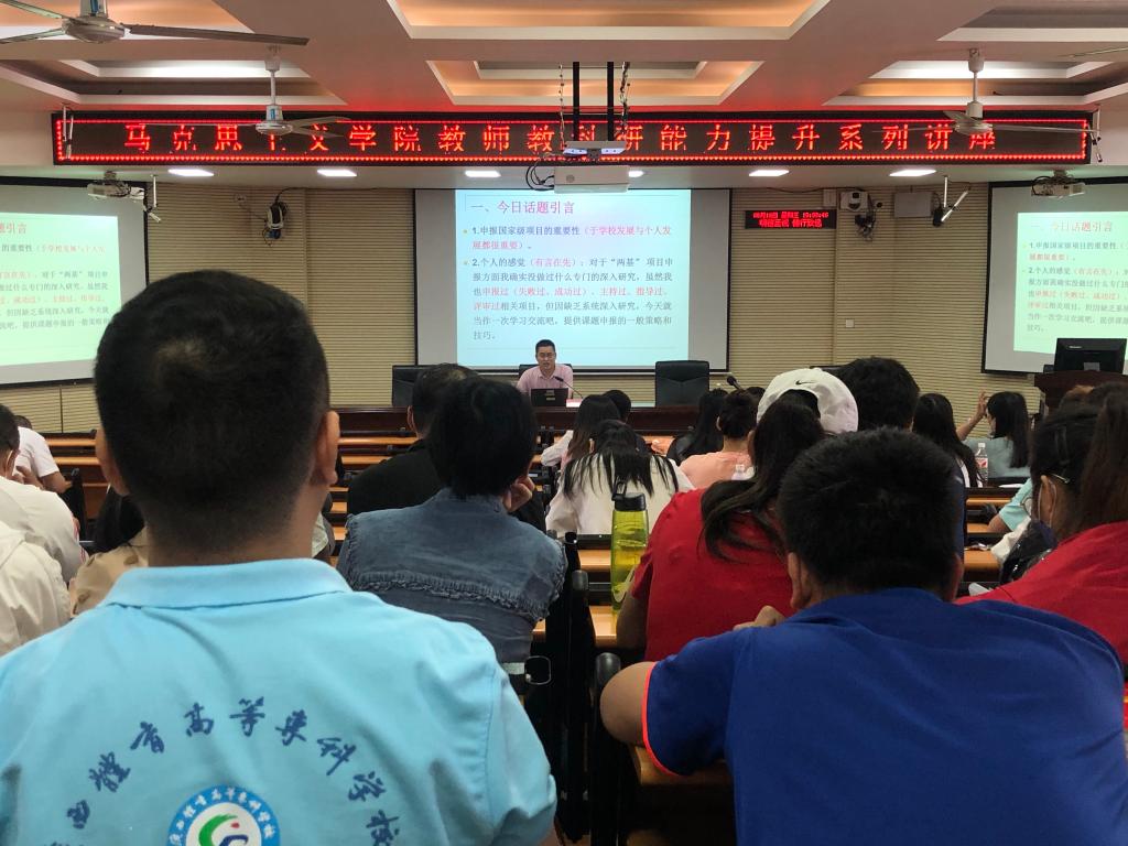 为提升马克思主义学院教师教科研能力和水平,5月18日下午,马克思主义学院邀请南宁师范大学经济与管理学院党委书记、二级教授纪明博士到校作题为“科研课题申报技巧”的专题讲座。马克思主义学院和体育与教育学院全体教师参加讲座,讲座由马克思主义学院院长谢有长主持。