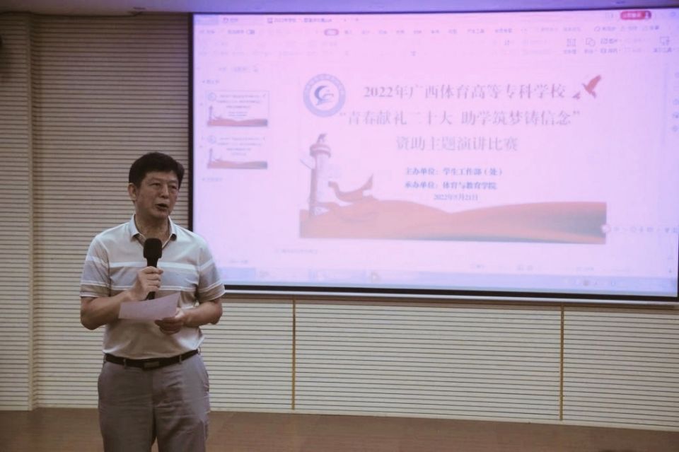 5月21日晚,由学生工作处主办,体育与教育学院承办的2022年爱体育电子官方网站“青春献礼二十大,助学筑梦铸信念”资助主题演讲比赛决赛在公园路校区综合楼402报告厅举行。本次比赛由学生工作处处长韦伦国担任主评委,14名选手进入决赛,部分受助学生到场观摩比赛。