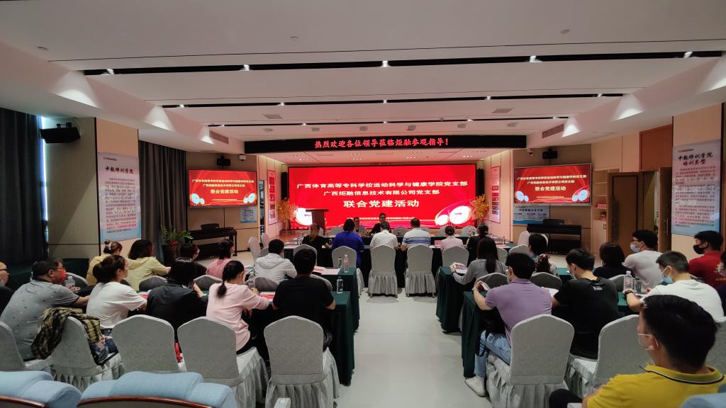 活动中,运动科学与健康学院和广西炬融信息技术有限公司分别就各自的基本情况进行介绍。学院党总支李翔书记以“学习党的十九届六中全会精神、全国两会精神和自治区第十二次党代会精神”为题,给党员们上了一堂生动的党课。随后,全体人员参观了广西炬融信息技术有限公司东盟智慧教育展示体验中心。