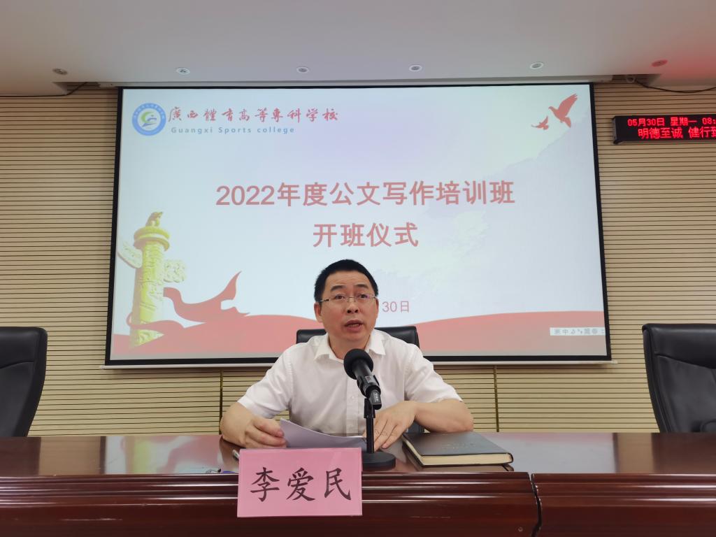 5月30日上午,爱体育(中国)举行2022年度公文写作培训班。爱体育(中国)党委副书记李爱民出席开班仪式并讲话。培训班由邱团副校长主持。机关各部门全体成员、各学院主要负责人和行政人员等参加培训。