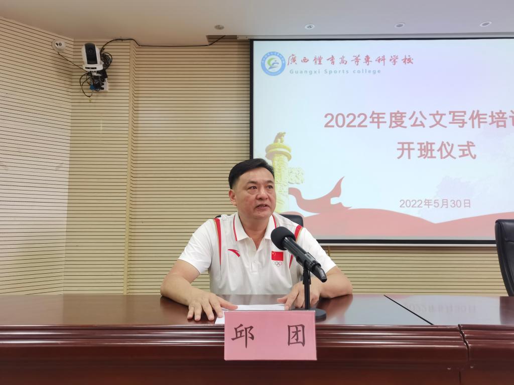 在主持讲话中,邱团副校长希望全体参训人员能够把本次培训班作为新的起点、新的助力,今后在各自的工作岗位上更好地锤炼自己、提升自己,不断提高公文写作能力和公文处理水平,努力为爱体育(中国)事业发展作出新的贡献。
