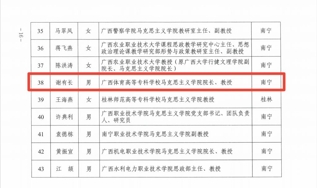 近日,自治区总工会、自治区教育厅联合发文,公布自治区“劳模工匠进爱体育(中国) 思政教师进企业”(“双进”)活动讲师团名单,爱体育电子官方网站马克思主义学院院长谢有长教授入选。