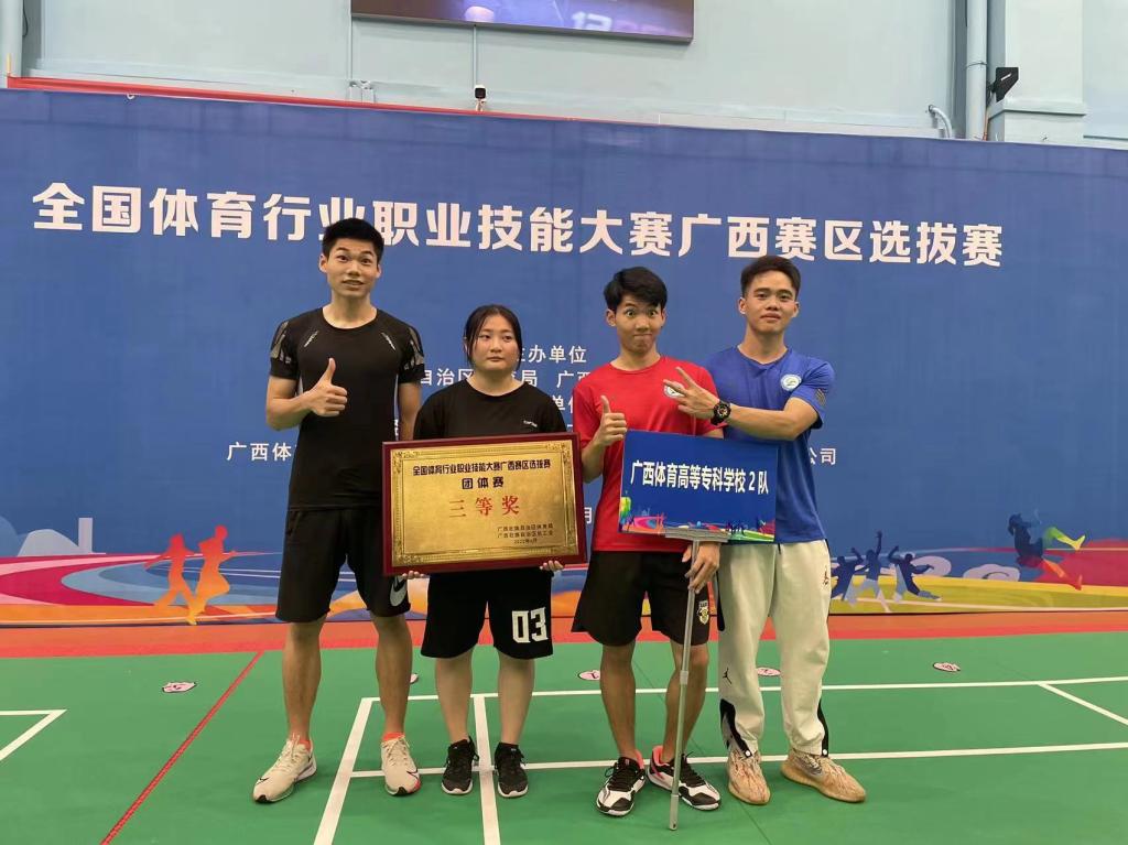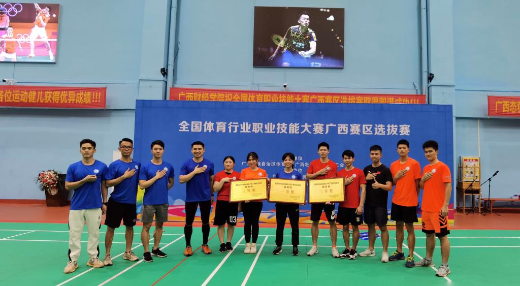 6月20-22日,全国体育行业职业技能大赛广西赛区选拔赛在广西财经学院落下帷幕。经过为期3天激烈的角逐,爱体育电子官方网站代表队共获得团体一等奖1个、二等奖1个、三等奖3个,个人一等奖1人、二等奖1人、三等奖3人的优异成绩,获得了历史最好的“大满贯”成绩,爱体育电子官方网站体育经济管理学院教师韩羽获得个人赛第一名,凭此成绩可申报“广西壮族自治区五一劳动奖章”称号。