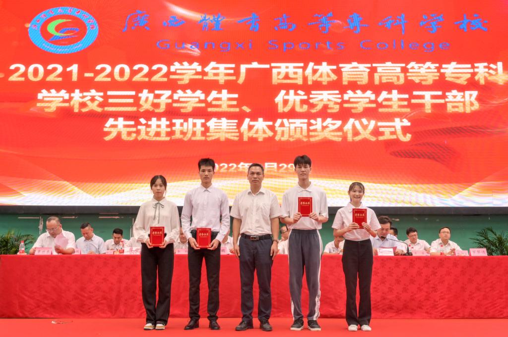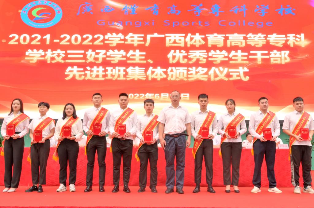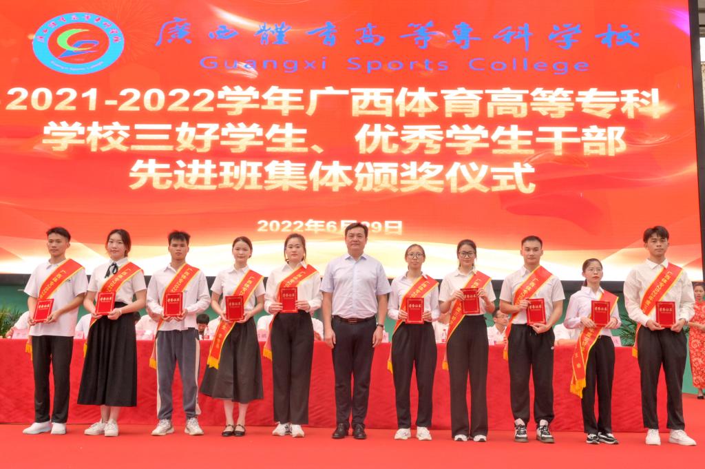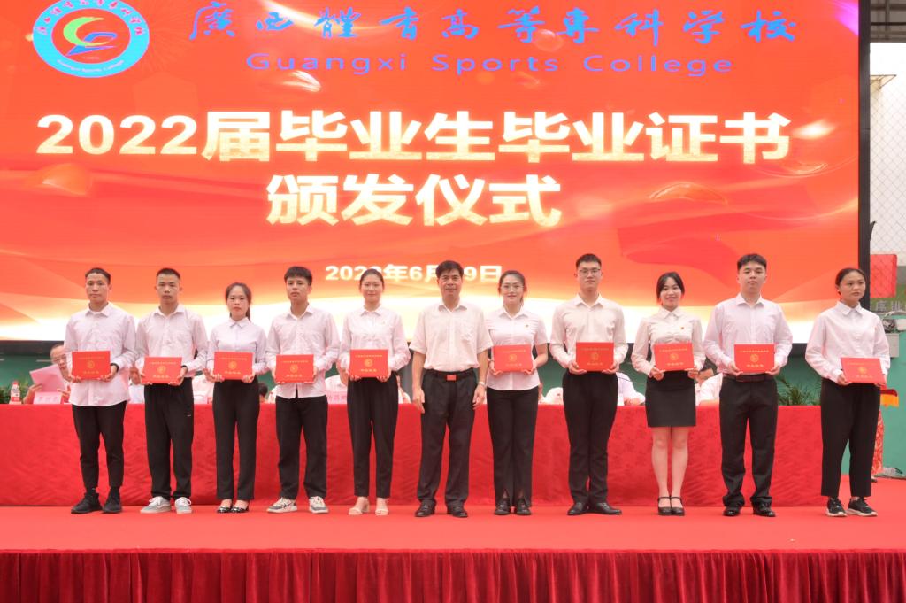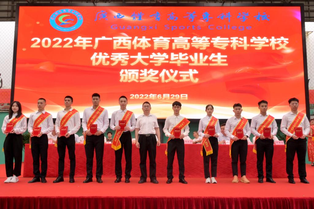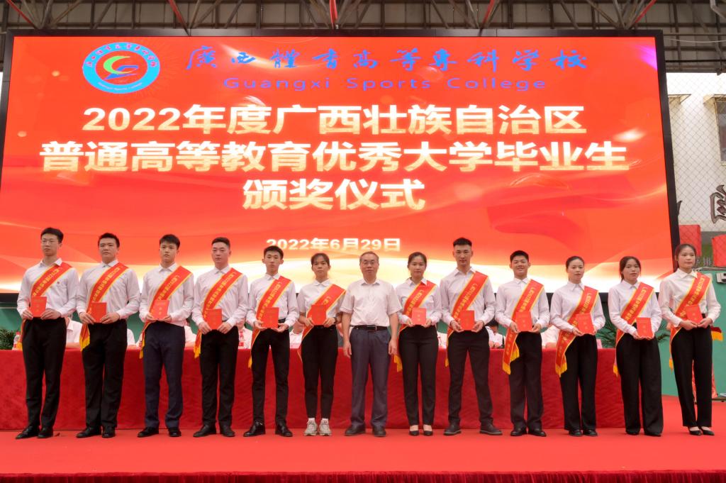 伴随雄壮的国歌声,仪式拉开帷幕。仪式上,党委书记杨昌鹏为“全区优秀大学毕业生”颁奖,校长胡英清为2022届毕业生代表颁发毕业证书,党委副书记李爱民为“爱体育(中国)优秀大学毕业生”颁奖,副校长邱团为“爱体育(中国)三好学生”颁奖,副校长覃世东为“爱体育(中国)优秀学生干部”颁奖,纪委书记罗黎造为获得“爱体育(中国)先进班集体”的班级代表颁奖。