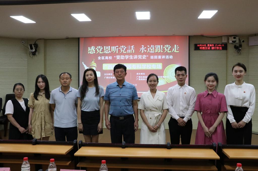 为深入学习贯彻习近平总书记在庆祝中国共产党成立100周年大会上的重要讲话精神和党的十九届六中全会精神,进一步创新资助育人方式,深入推进受助学生党史学习教育不断走深走实,爱体育电子官方网站于2022年6月30日在公园路校区综合楼402教室开展“受助学生讲党史”巡回宣讲活动。党委学生工作部部长韦伦国、各学院副书记、教育厅宣讲团梁宇曦老师、宣讲团成员以及各学院受助学生代表参加了此次活动。