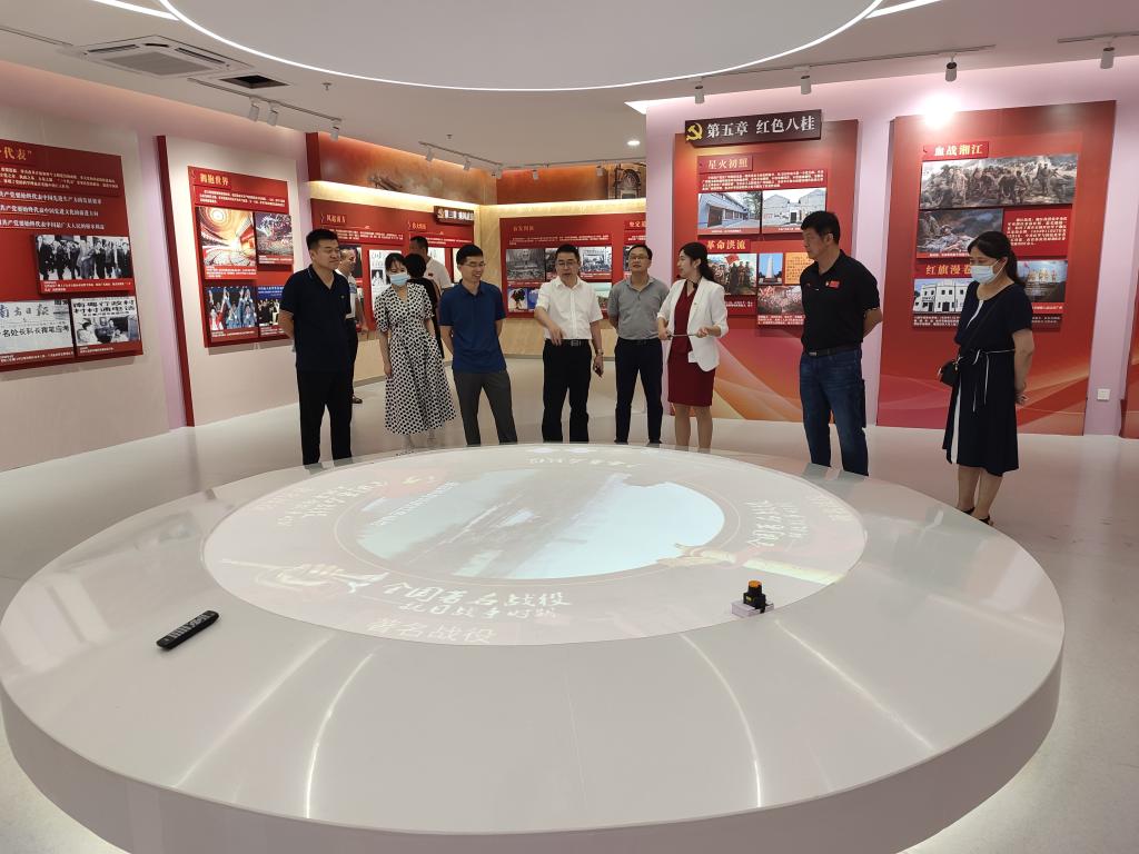 在党建思政教育基地,广西建设职业技术学院马克思主义学院副院长赵胜营教授向考察组介绍了场馆建设情况及功能构成。据了解,广西建设职业技术学院党建思政教育基地占地1200平方,总投入1000多万元,由红船大厅、党史教育馆、虚拟仿真教学中心和360度沉浸式体验馆四个部分组成,是该校推进党建与思政工作创新,对全校党员干部和青年学生进行党性教育和思政教育的特色教育基地。同时,通过以“馆课结合”主题互动体验式教学方式,实现红色教育资源助推思政课改革创新,提高思政课教学质量,增强学生对思政课的获得感。