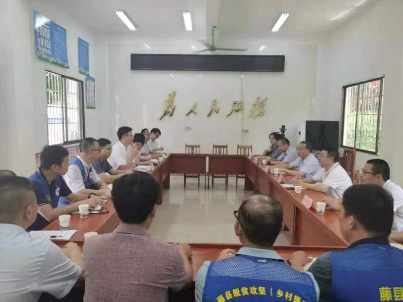 在料南村村委,杨昌鹏一行与藤县党委副书记莫德锦、藤县党委常委、副县长文春晖及永太、料南村村委及驻村第一书记和驻村工作队员一起进行了座谈。杨昌鹏代表爱体育(中国)党委对藤县委、县政府,宁康乡党委、政府等部门给予爱体育电子官方网站第一书记工作上的指导和支持、生活上的关心和帮助表示感谢。杨昌鹏指出,爱体育电子官方网站积极响应党中央“巩固拓展脱贫攻坚成果,全面推进乡村振兴”号召,高度重视第一书记驻村工作,爱体育(中国)党委精选第一书记人选,并多次召开会议研究第一书记驻村工作,出台一系列政策落实帮扶措施。杨昌鹏对爱体育电子官方网站第一书记驻村的工作状态表示满意,同时提出了几点希望:一要继续传承爱体育电子官方网站第一书记艰苦奋斗精神,提高工作执行力,落实好当地党委政府的工作要求;二要深入开展调研,多到农户家中里了解情况,推进地方中心工作;三要深刻领会中央一号文件精神,做好乡村振兴重点工作;四要扶持当地产业典型,发挥带头示范作用;五要加强与藤县和宁康乡相关部门沟通,及时汇报工作开展情况,切实助力乡村振兴国家战略。
