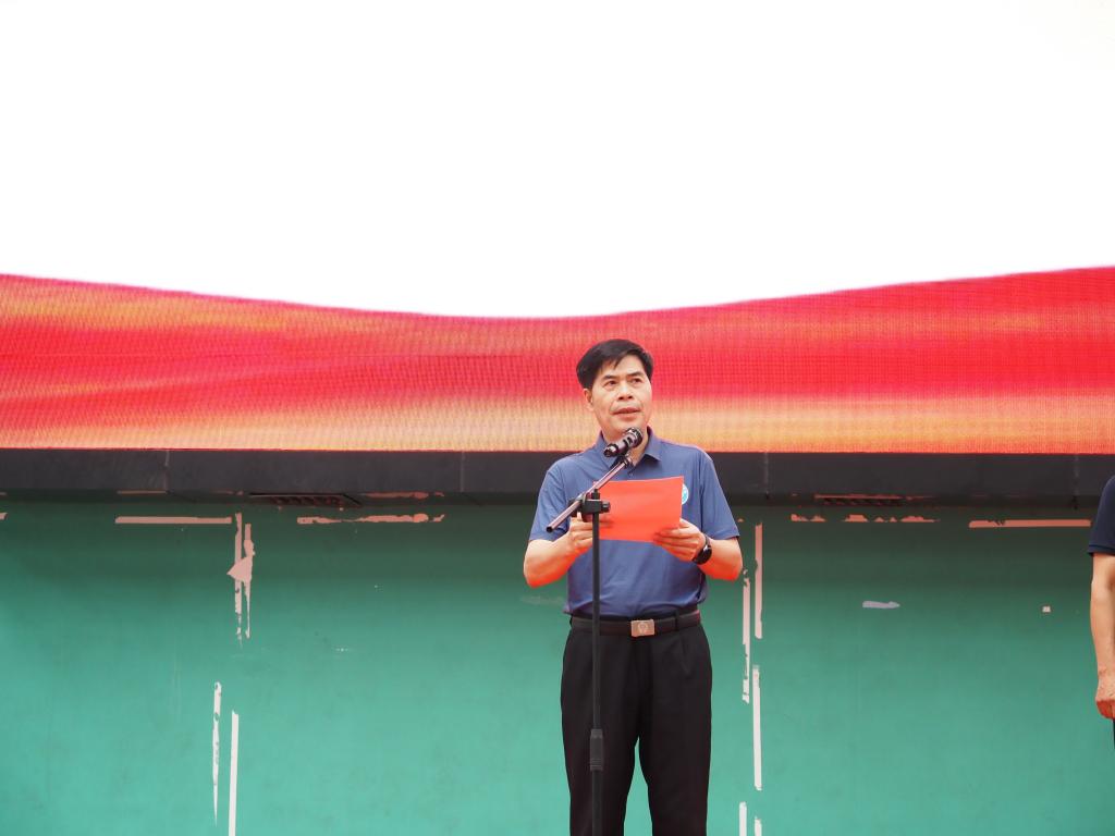 最后,胡英清校长为运动员代表授旗,祝愿同学们旗开得胜。