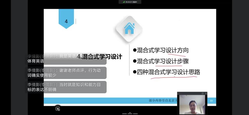 第六个专题是由华中农业大学化学学院曹敏惠教授主讲,她以“信息化时代混合教学模式与课程设计”为主题,内容具体围绕着信息化时代下如何进行混合教学模式与课程设计,从教学理念、教学目标、教学原理、教学学习设计和教学实践这六大模块详细展开。