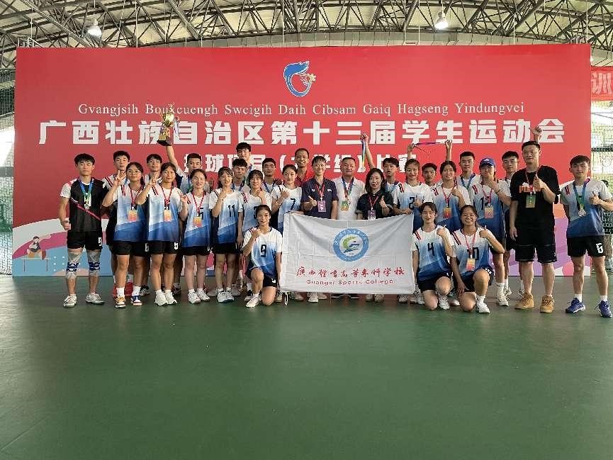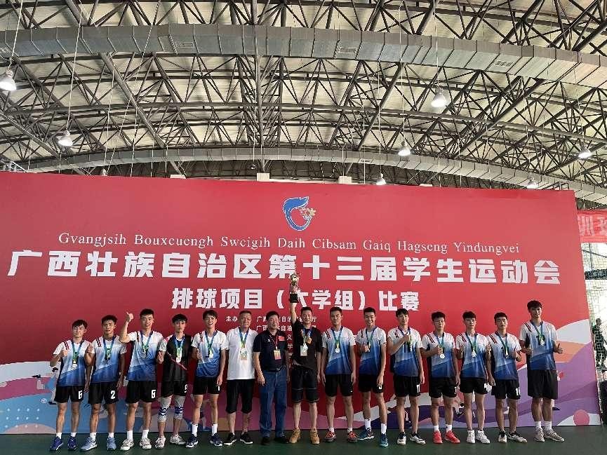 广西壮族自治区第十三届全区学生运动会“排球项目(大学组)”比赛由自治区教育厅、自治区体育局、共青团广西区委共同主办。本次比赛共有62支高校队伍参加,共设置普通本科组、高职高专组和体育专业组三个组别。由体育与教育学院余晶副院长、足排球教研室杨湘、伍金辉、陈菲菲老师率队前往参加体育专业组比赛。这是爱体育电子官方网站男女排时隔16年再次出现在学生运动会排球比赛赛场上,也是全区唯一一所体育类专科院校。在赛场上,体专学子奋勇拼搏,展现出永不言败的体育精神。最终以荣获男子专业组第二、女子专业组第七佳绩圆满收官。