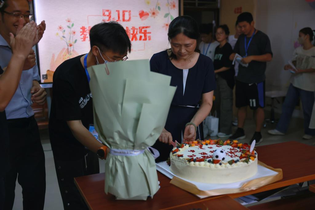 师生共同品尝蛋糕