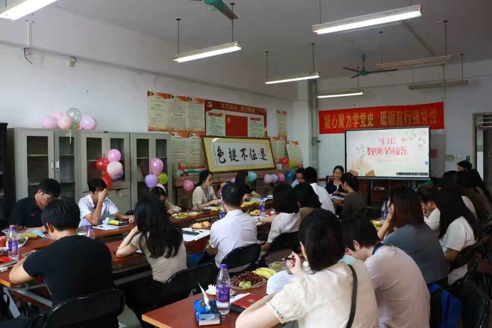 9月9日,体育经济管理学院全体教职工在长岗校区瑞兴楼422党员活动室开展以“弘扬高尚师德,潜心立德树人”为主题的教师节活动。